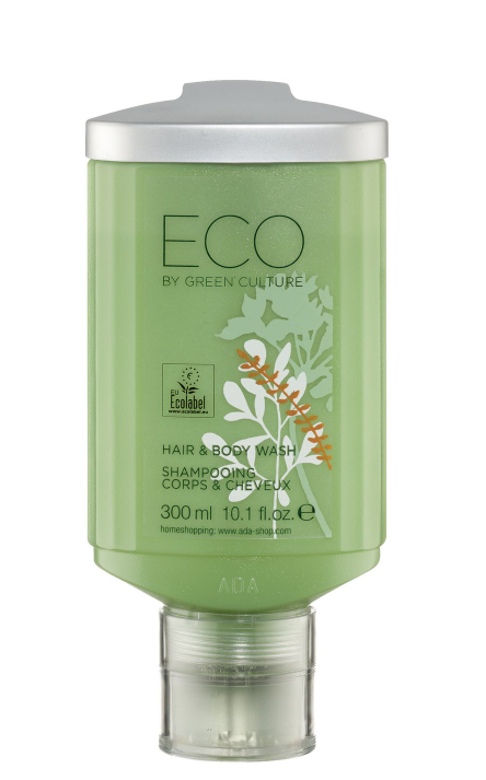 ECO by Green Culture juukse- ja kehapesu šampoon 300 ml Press + Wash on looduslike koostisosadega hooldav pesugeel.